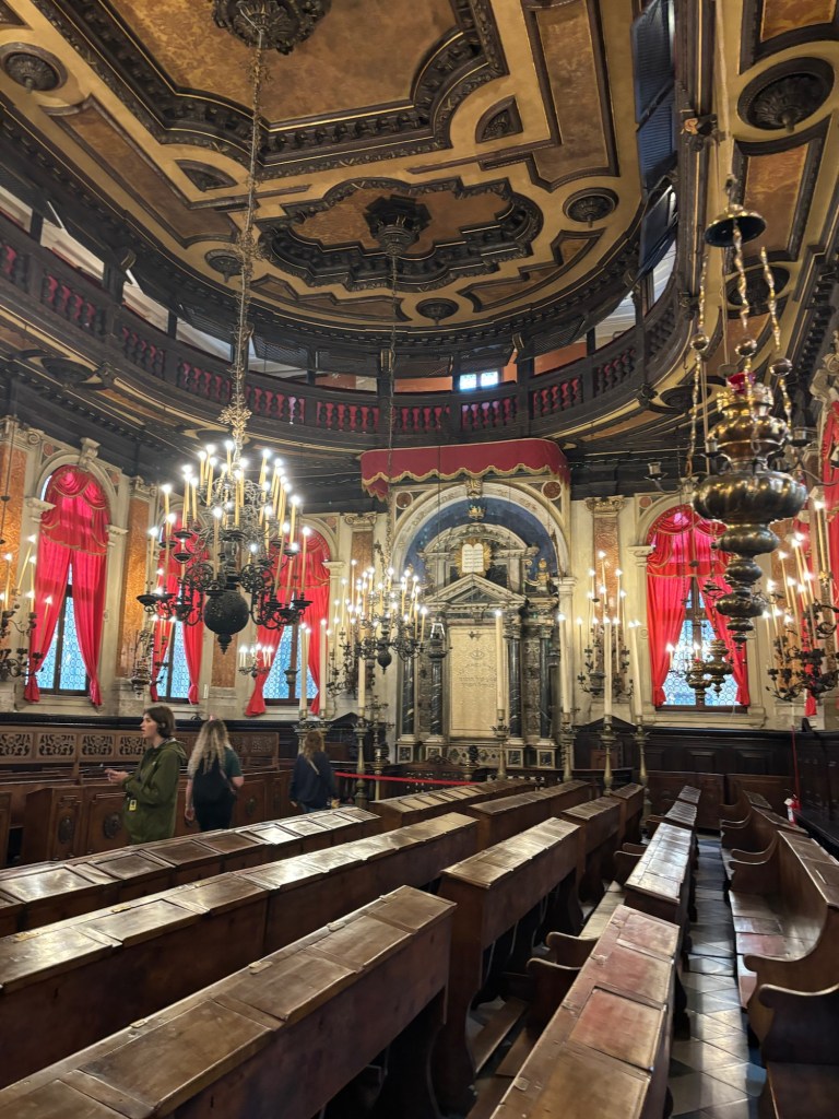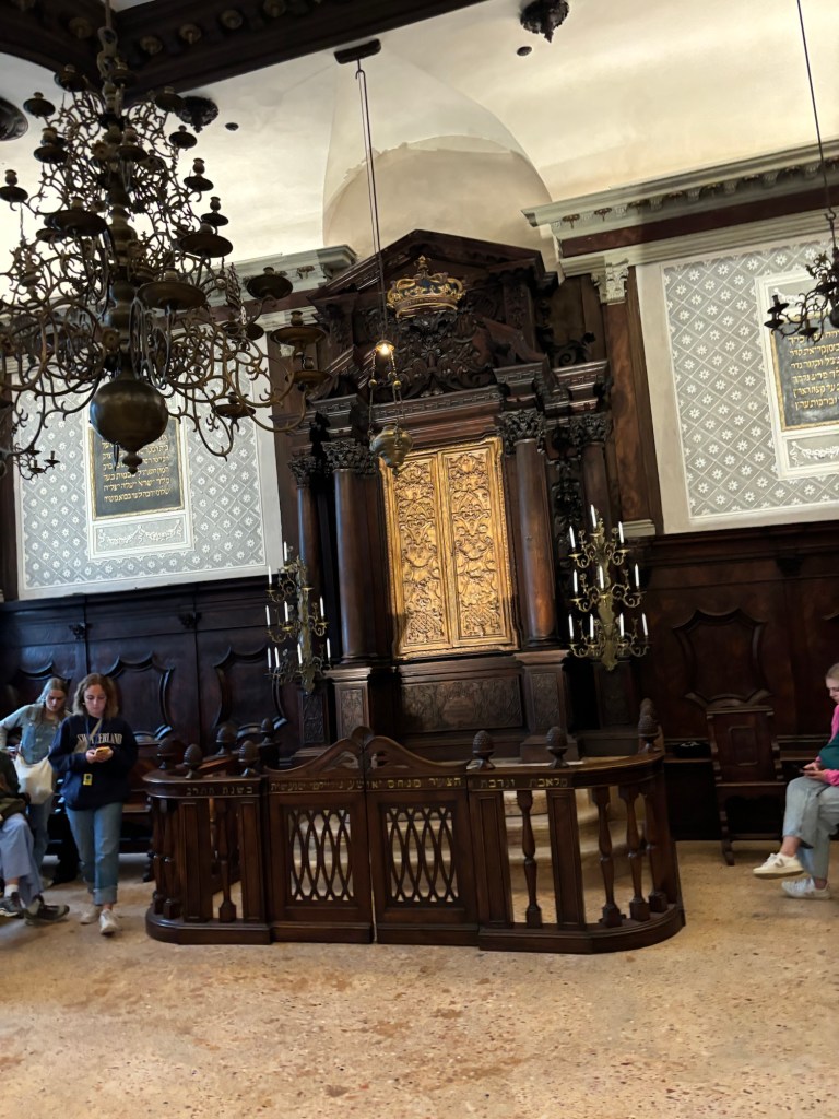 As I visited two of the synagogues found in the historic Venice Ghetto, I was very touched to see the Eternal Light in both of them. I felt warm seeing them. It felt like I was looking at something much more steadfast and certain than myself. There’s something reassuring about being in a synagogue because of that light. It’s accessible and familiar, yet brought to a new and honored level there. It isn’t big and offers little when compared to large, electric lighting systems, but its influence is easy to feel. In either a dark or light room, it would be one of the first things you notice.
