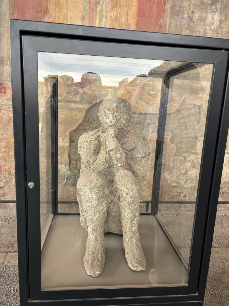 Anyone who has studied history has likely heard the story of Pompeii, Italy. Preserved remarkably well beneath volcanic ash, this Roman city is a window into the life of an extinct civilization. Seeing this site is amazing for so many reasons, from the mosaics to the frescos to the courtyards. My most spiritual experience, however, was sparked by one of the plaster castes found in the ruins.