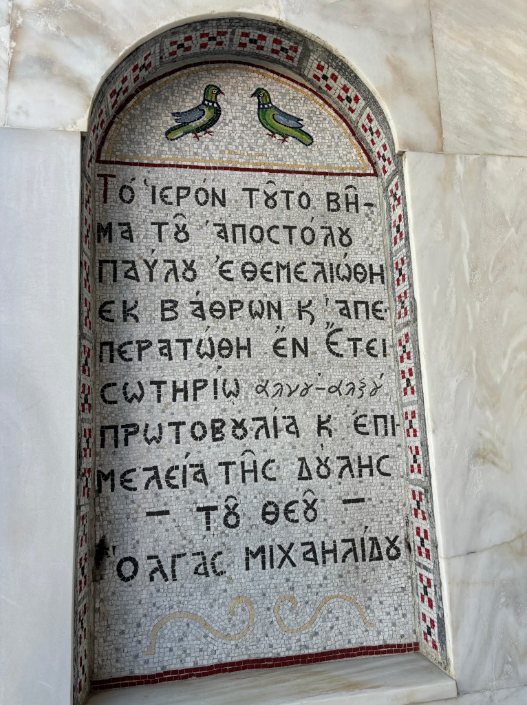 “St. Paul, was probably born ten years later than Jesus. The place of his birth was Tarsus, a cosmopolitan city in southern Turkey. He was a Jew and a ‘Roman Citizen’, meaning that he spoke ‘Koine’ Greek, the household language of all educated citizens throughout the Roman empire. Well-educated, he was sent in his late teens to Jerusalem to be instructed in Judaism under the guidance of the eminent Rabbi Gamaliel. Paul, then known as Saul, became a respected Pharisee and understood the danger of the new movement arising from Jesus. He gave himself to eliminating it. While journeying to Damascus, he had an overwhelming experience which rendered him a powerful advocate of Christianity. He took the faith from out of its Jewish confines and planted it within the non-Jewish world. Travelling extensively, he came to Greece, planting churches in Philippi, Thessalonica, Athens, Loutro Elenis and Corinth and is known to have visited Veroia and Crete…Paul kept in contact with the churches he planted by writing letters, some of which are in the New Testament…They are ‘applied Christianity’ rather than ‘systematic theology’.”